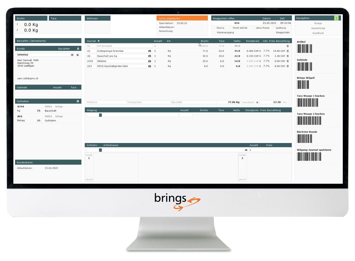 Die brings Wägesoftware wird in der Schweiz entwickelt und ist auf Sammelstellen, Entsorgungshöfen und Bergbahnen in den unterschiedlichsten Kantonen im Einsatz. Mit der brings Wägesoftware setzen Sie auf ein echtes Schweizer Qualitätsprodukt.